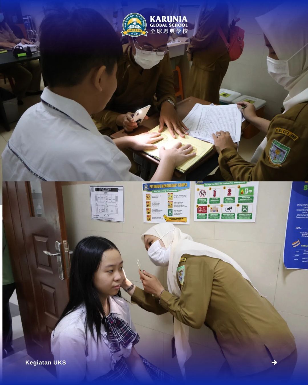 Karunia Global School bekerja sama dengan Puskesmas Kebun Handil untuk melaksanakan kegiatan UKS bagi siswa SMP dan SMA KGS