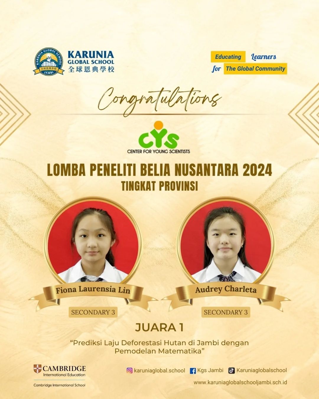 Juara 1 dengan judul penelitian "Prediksi Laju Deforestasi Hutan di Jambi dengan Pemodelan Matematika"