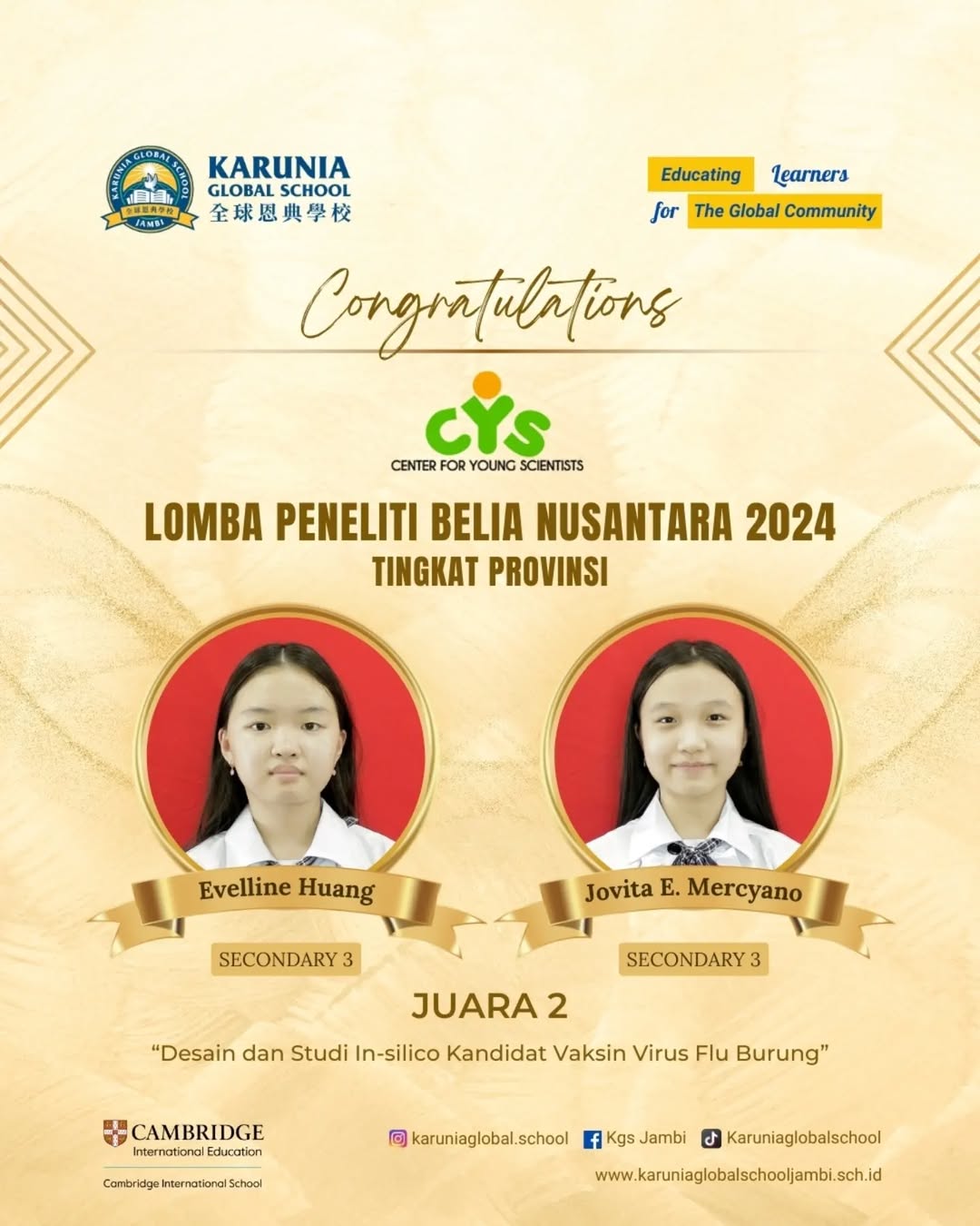 Juara 2 dengan judul penelitian "Desain dan Studi In-silico Kandidat Vaksin Virus Flu Burung"