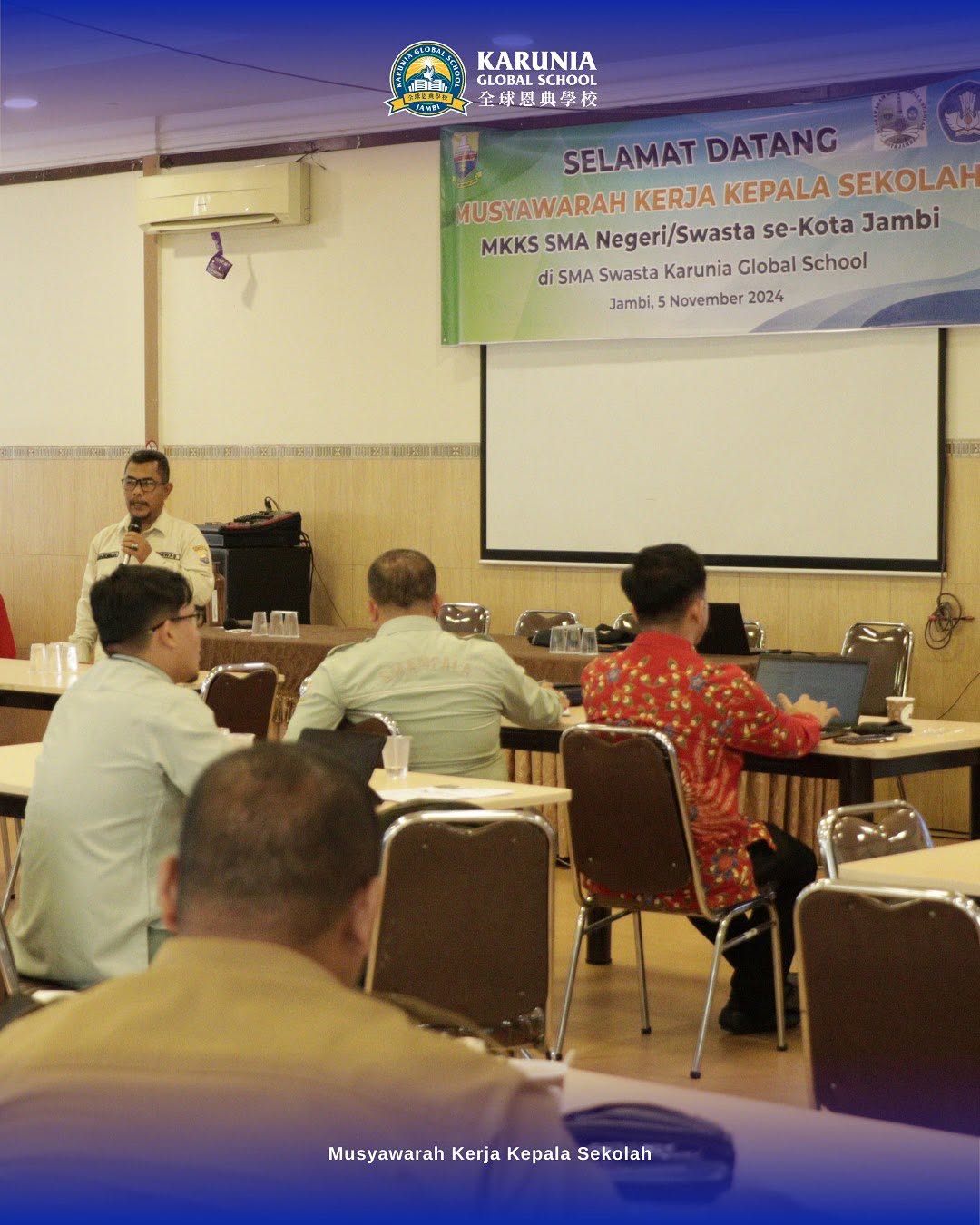 Kepala Sekolah SMA Karunia Global School turut serta dalam Musyawarah Kerja Kepala Sekolah (MKKS) yang diadakan di KGS. Dalam pertemuan ini, mereka mendiskusikan langkah-langkah penting untuk memperkuat perlindungan hukum, profesi, keselamatan kerja, dan hak kekayaan intelektual bagi para guru sesuai arahan undang-undang.