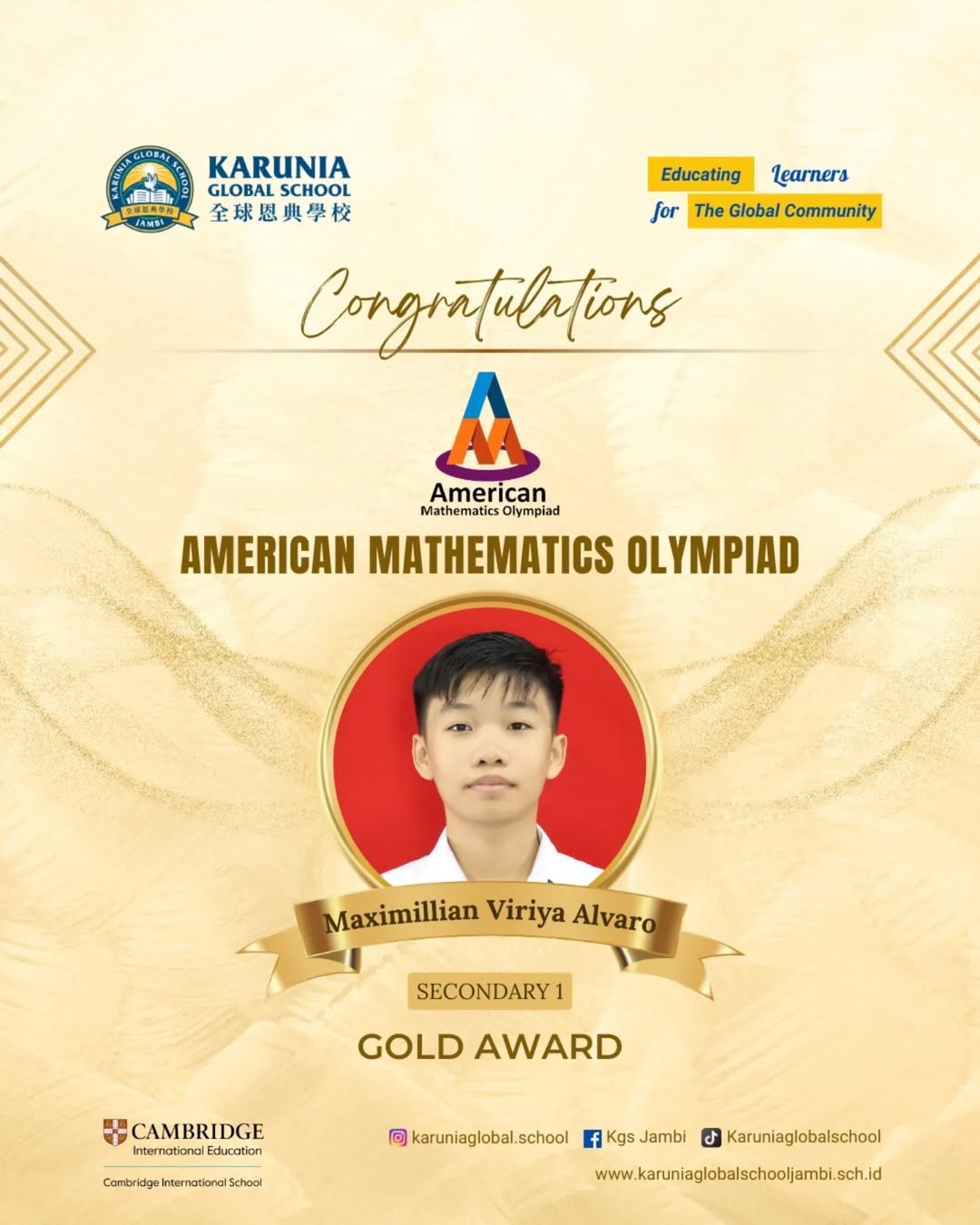 Selamat kepada Maximillian Viriya Alvaro, siswa SMP Karunia Global School,...