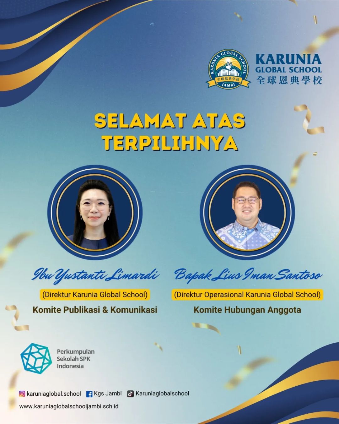 Selamat Atas Terpilihnya Ms. Yustanti Limardi dan Mr. Lius Iman Santoso Ciputera Sebagai Pengurus Perkumpulan Sekolah SPK Indonesia 2024-2027