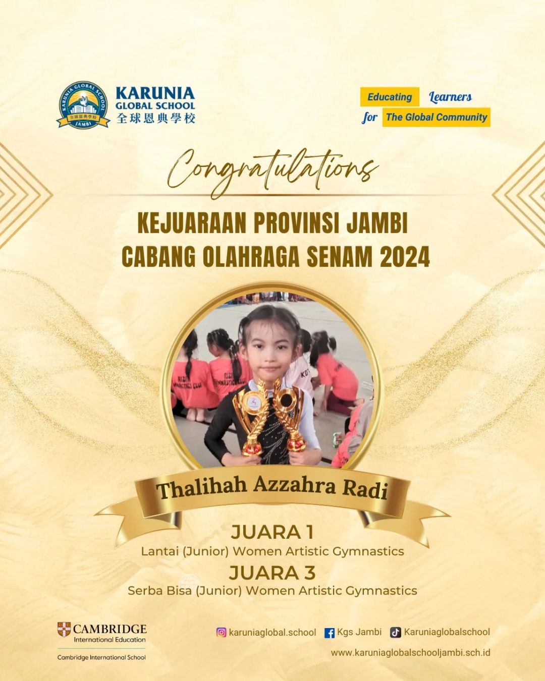 Selamat kepada Thaliah Azzahra Radi, siswa SD Karunia Global School...